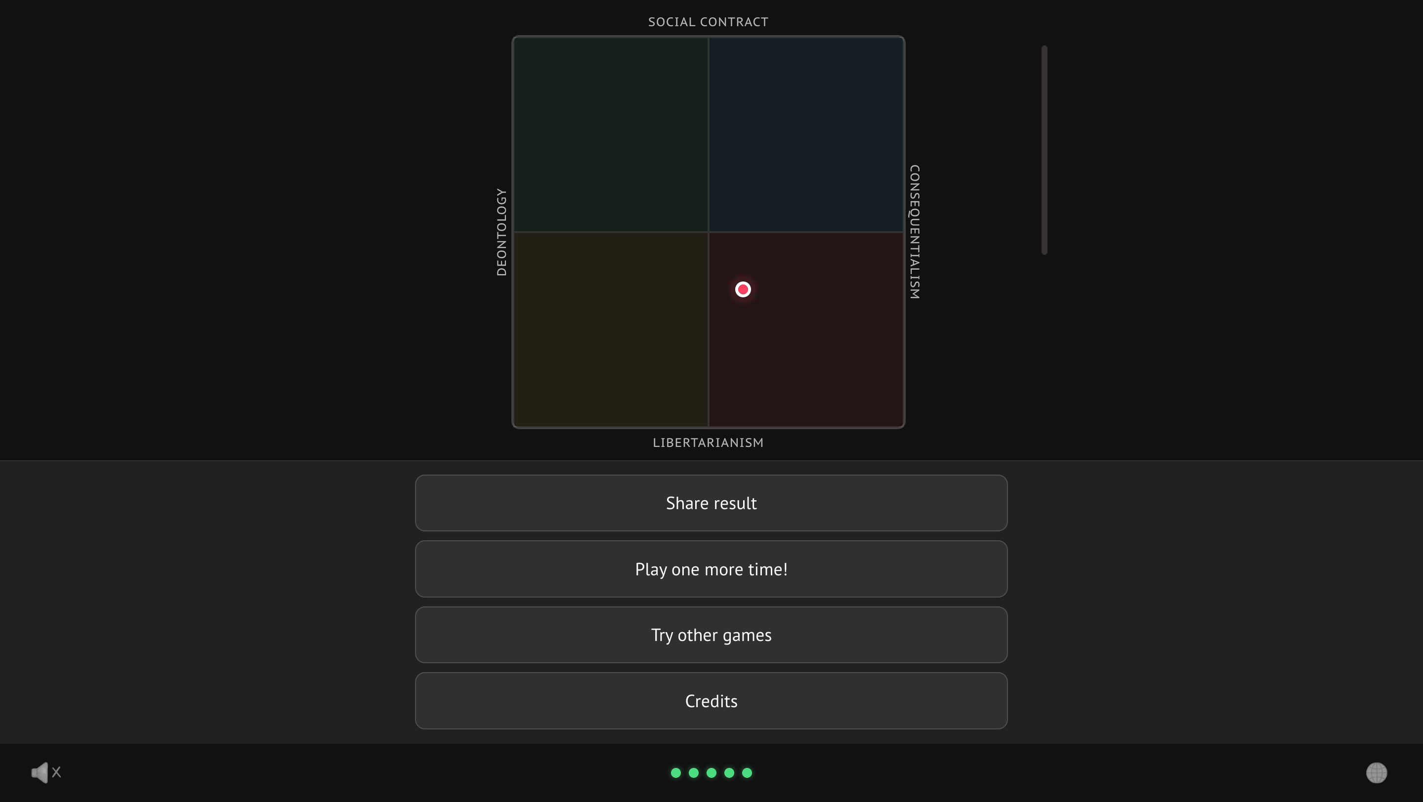 At the end of the game, the player sees a result showing which ethical approach is closest to them based on their answers.