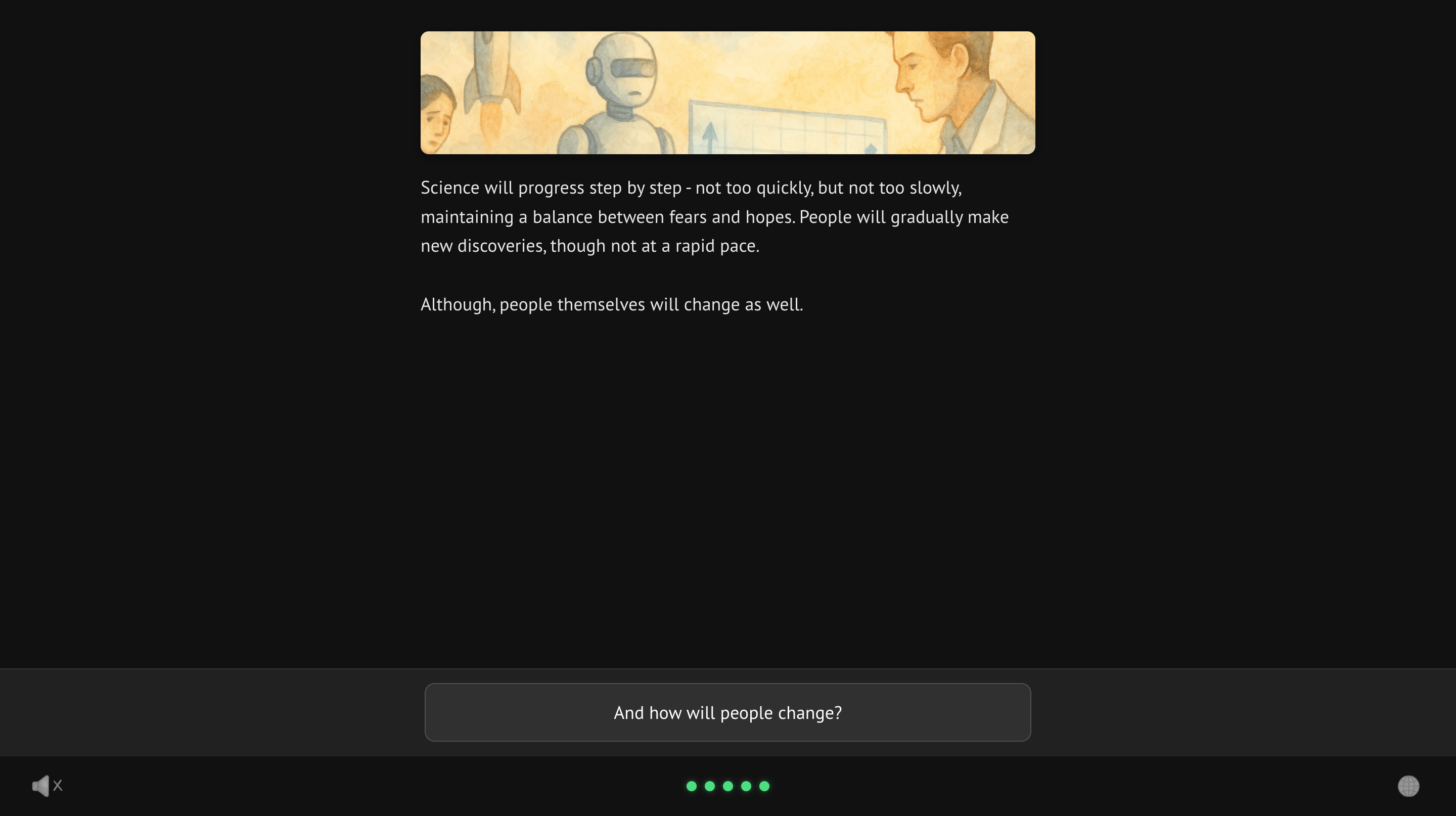 - The end of the story: a description of how the civilization will develop based on the player’s choices.